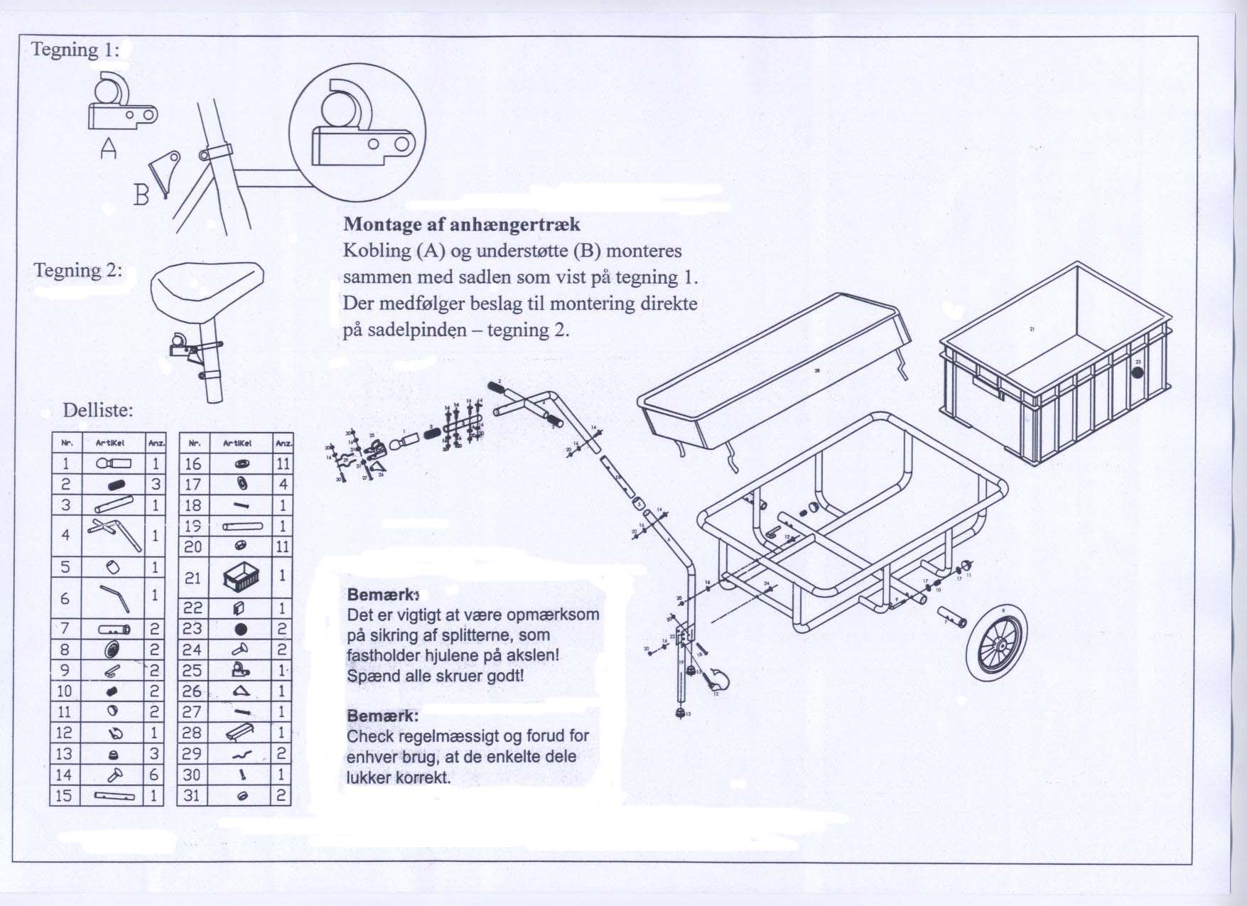Specifikationer: Cykeltrailer m/låg kobling og støtteben